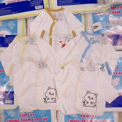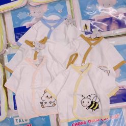 - Thiết kế vạt chéo tiện lợi: Kiểu vạt chéo giúp việc mặc và thay đồ cho bé dễ dàng hơn, đặc biệt phù hợp cho trẻ sơ sinh, giúp mẹ thao tác nhanh chóng và nhẹ nhàng.